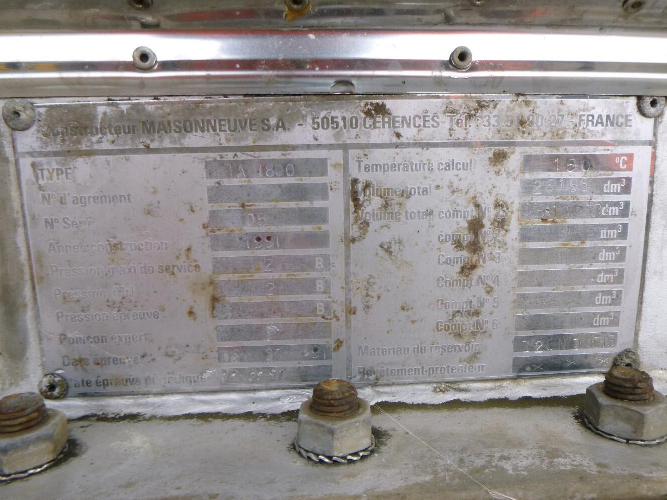 1991 Maisonneuve Chemical tank inox 26 m3 / 1 comp