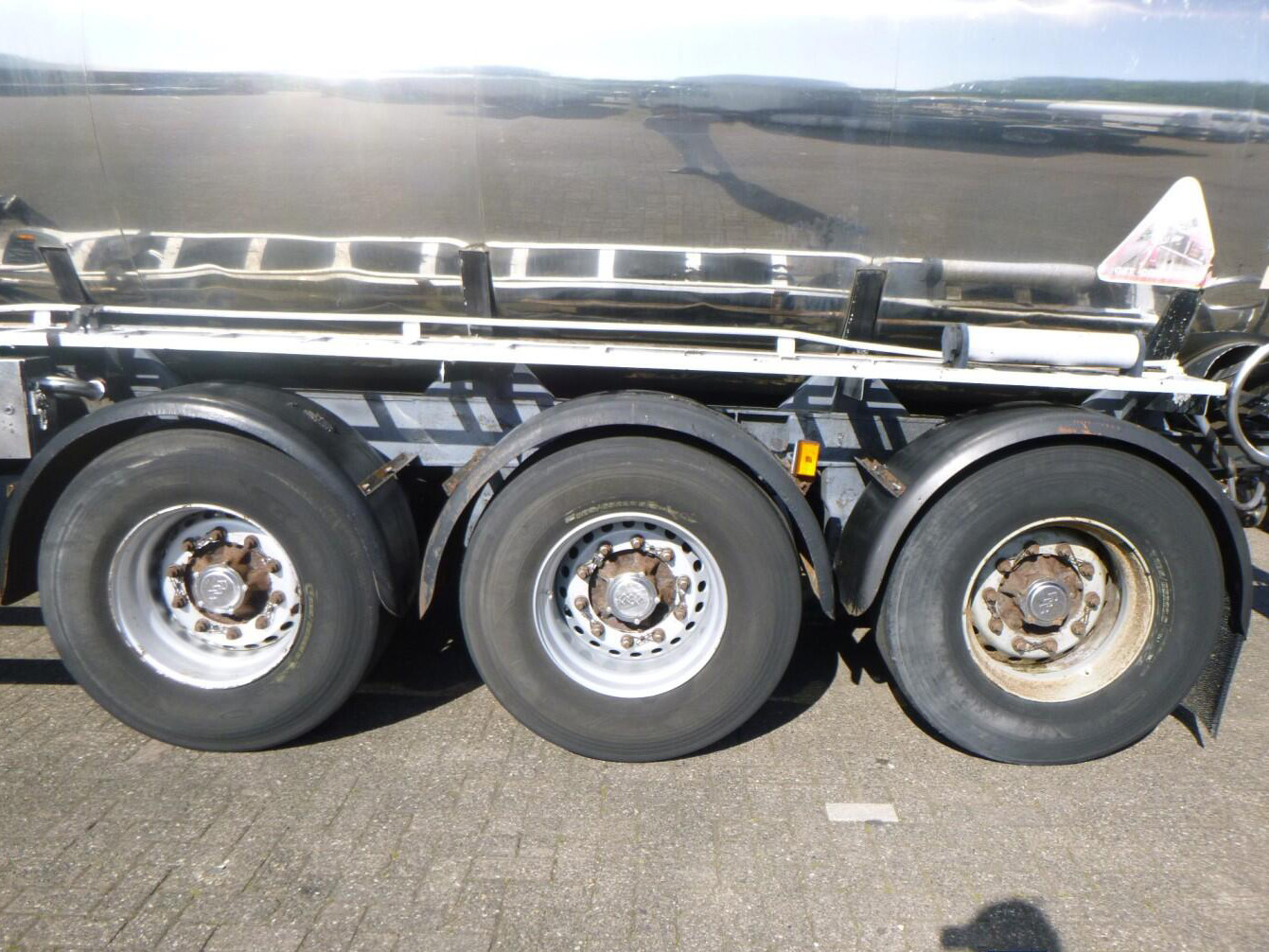 Insulated inox (stainless steel) bitumen tank, Capacity 30000 liters, 1 Compartment, Steam heating, Year of construction 2004, Air suspension, Ror axles, Drum brakes, ABS, Shipment dimensions 1170x250x360 cm